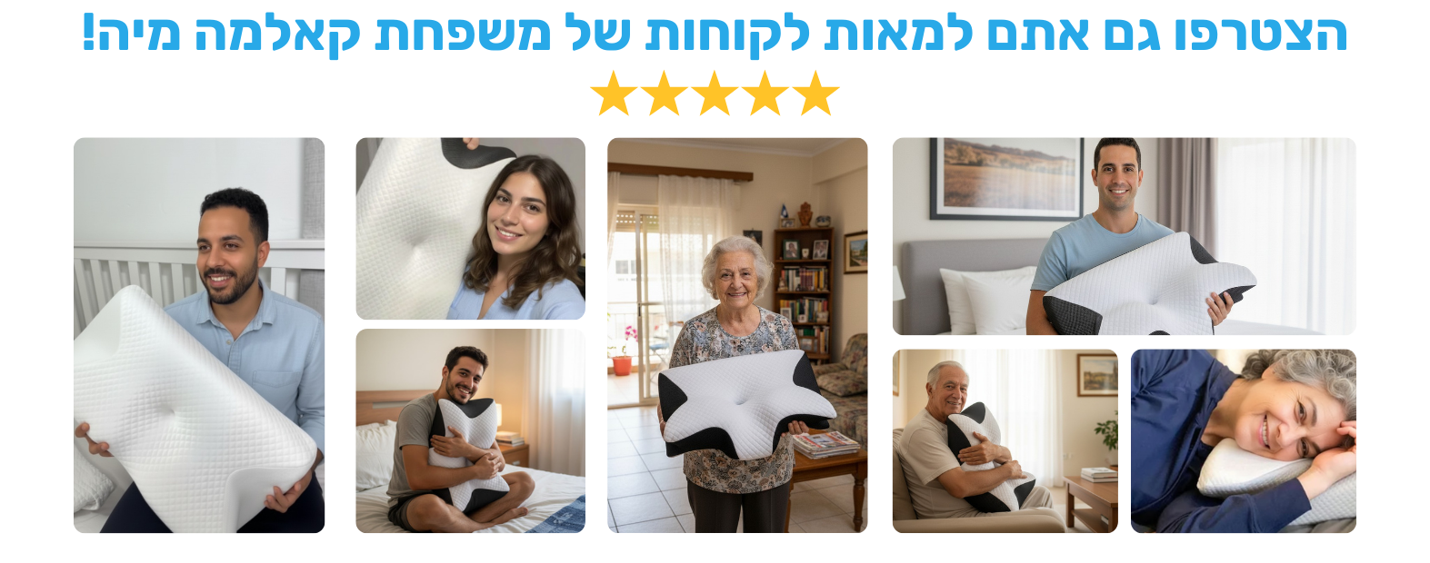 מאות לקוחות ישראלים כבר נהנים משינה טובה יותר וללא כאבים בזכות הכרית של Calma Mia, ומדווחים על שיפור משמעותי באיכות השינה ובתחושת הרעננות בבוקר.