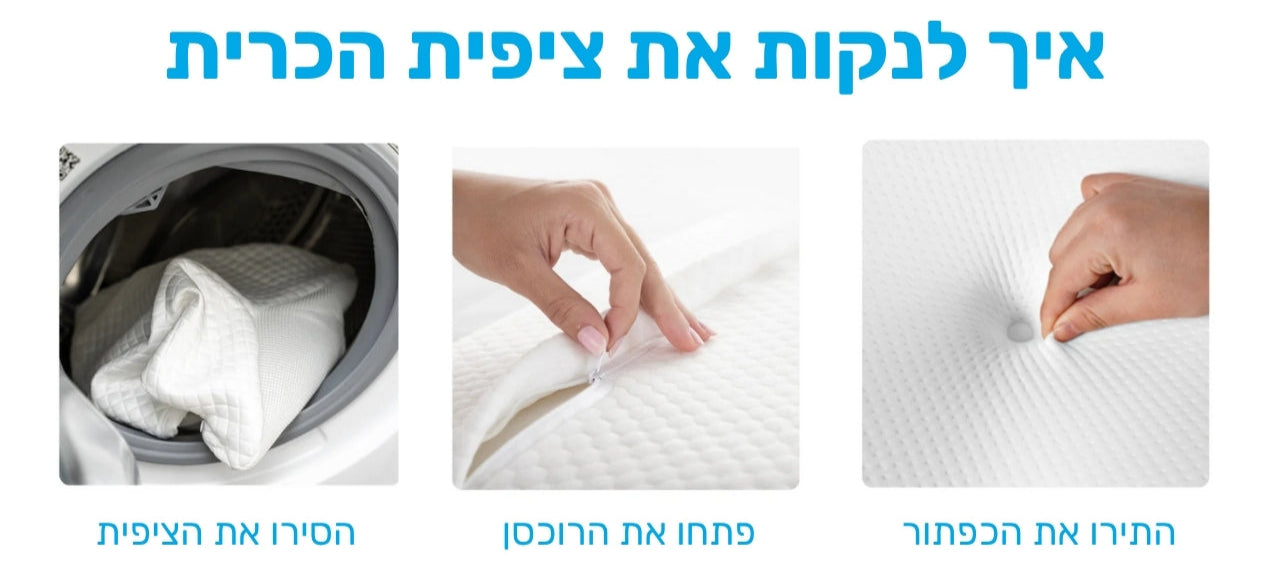 למרות שהכרית מגיעה עם כיסוי נשלף וניתן לכביסה, אנו ממליצים להשתמש גם בציפית. הציפית מוסיפה שכבת הגנה נוספת, שעוזרת לשמור על הכרית רעננה, נקייה ובמצב מצוין לאורך זמן.