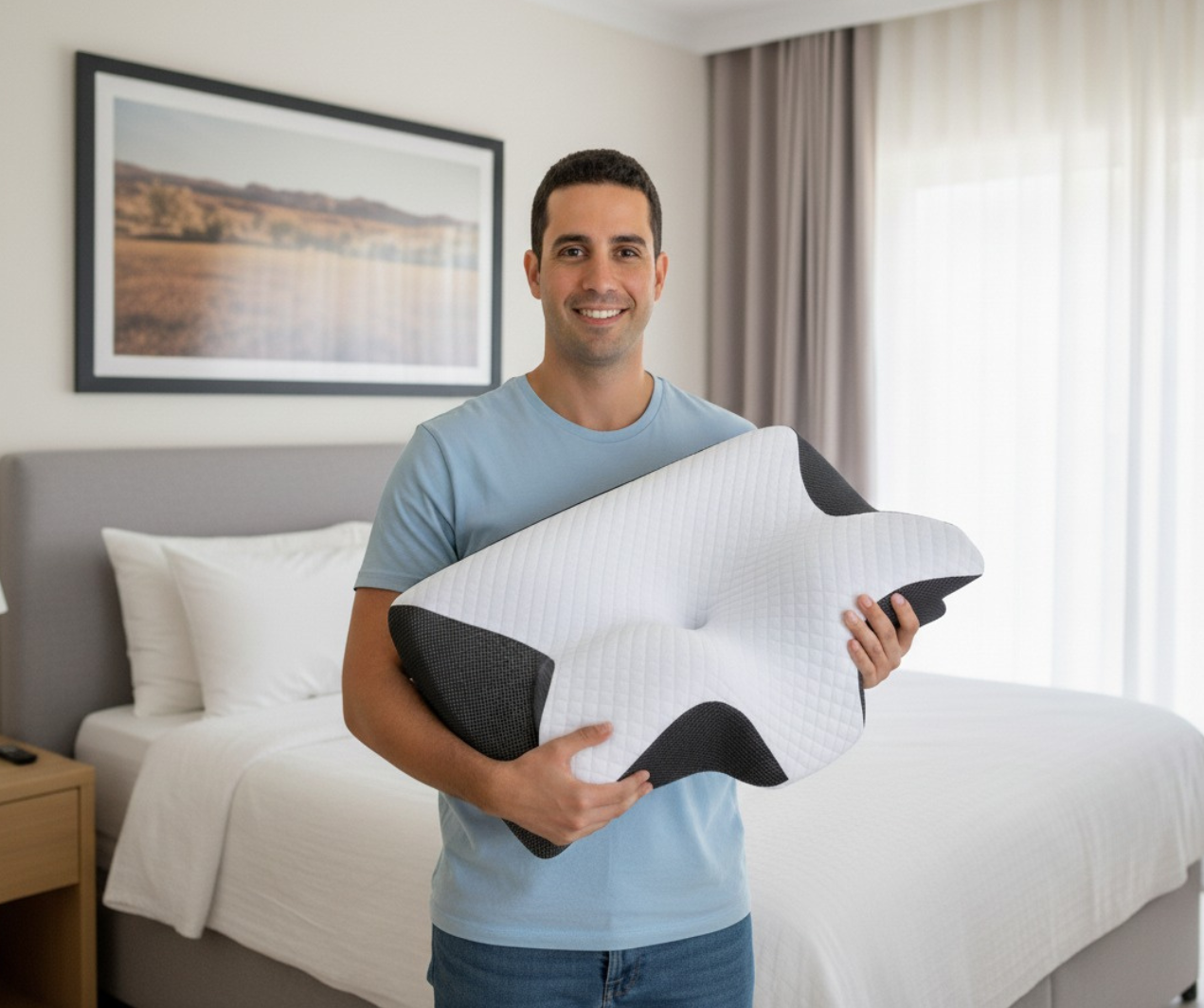 הכרית הארגונומית שלנו תומכת בצוואר, שומרת על עמוד השדרה בקו טבעי ומאפשרת שינה עמוקה ובריאה.
