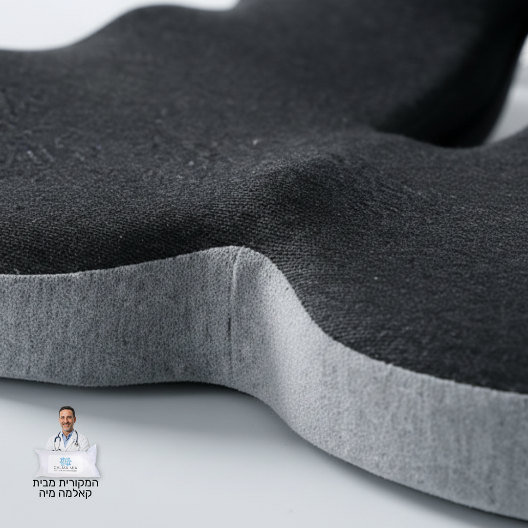 כרית אורטופדית עם קצף זיכרון רפואי ואיכותי מבית קאלמה מיה, מפחיתה לחץ מהגב, מהאגן ומהרגליים בזמן ישיבה ממושכת – לנוחות ותמיכה מושלמת לאורך כל היום.
